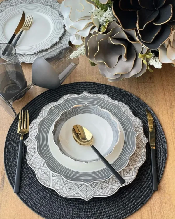 اقلام سرویس غذاخوری چینی ترک 6 نفره PAÇI لبه دالبر