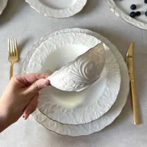سرویس غذاخوری ترک 12 نفره Karaca دفرمه سفید مشکی