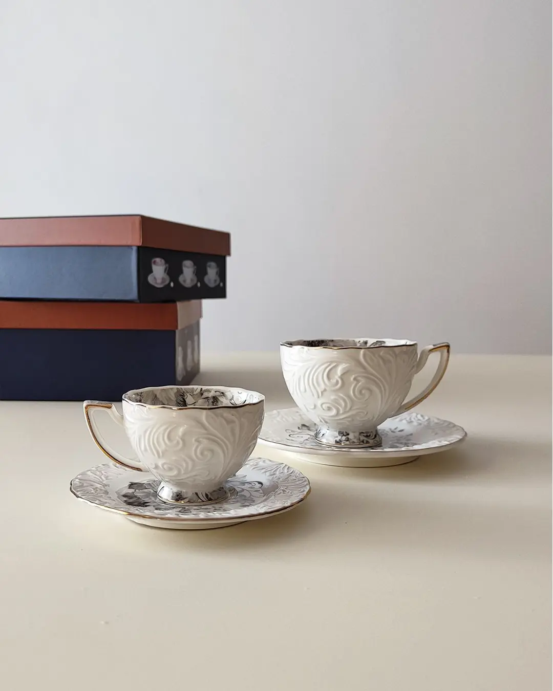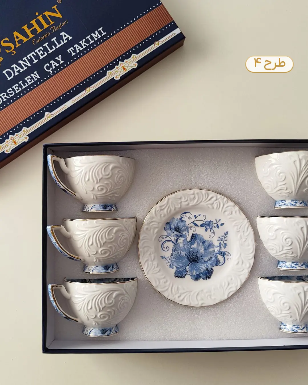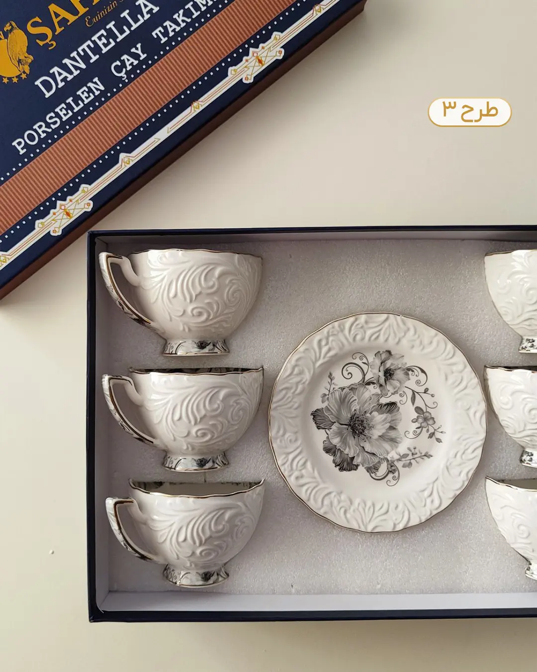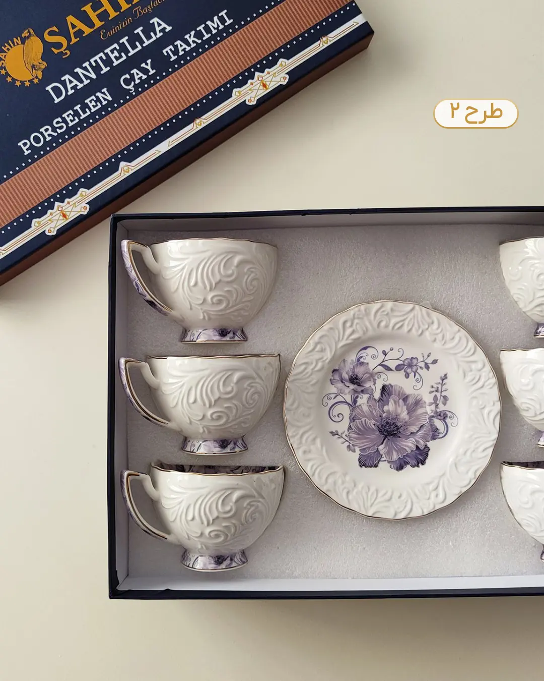 سرویس چای و قهوه خوری 6 تایی گل برجسته Şahin