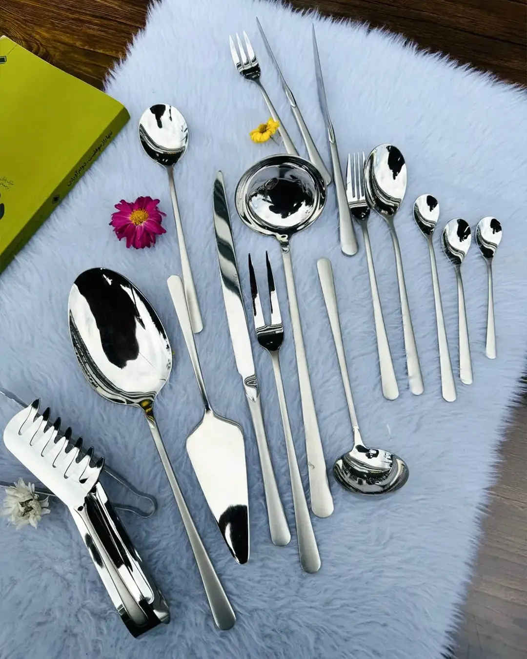 ست جذاب و اعلا با گارانتی مادام العمر✔️ سرویس قاشق چنگال فیلیکس 30 نفره 157 پارچه نقره ای مات