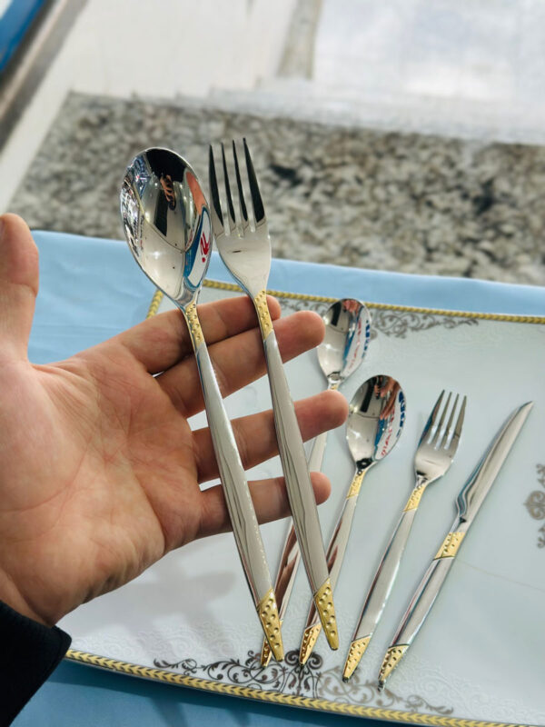 قاشق چنگال یونیک اصلی 24 نفره نقره ای مدل پنیری دو رنگ