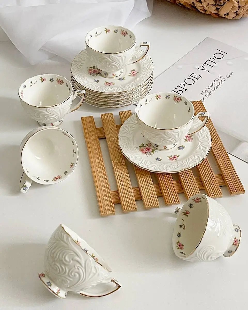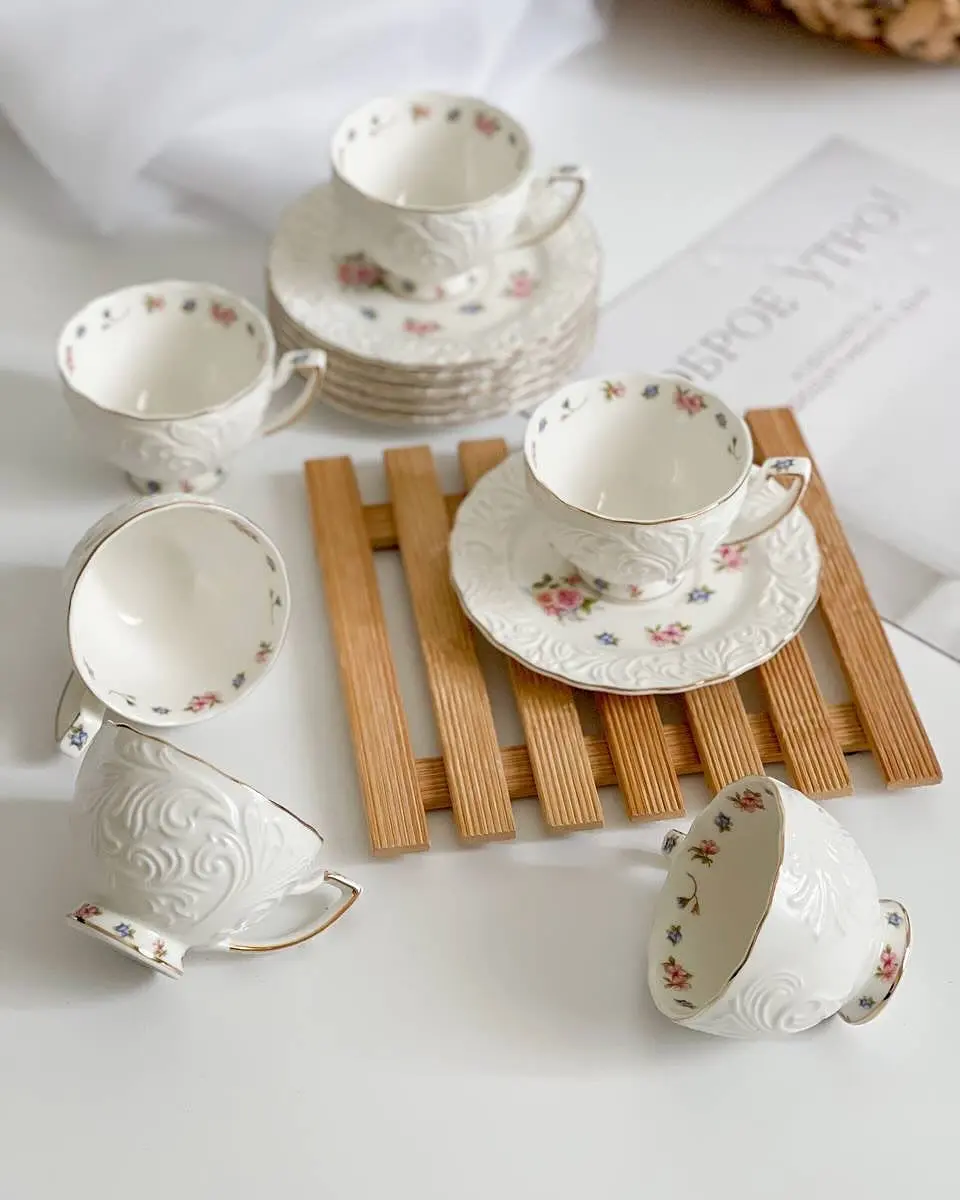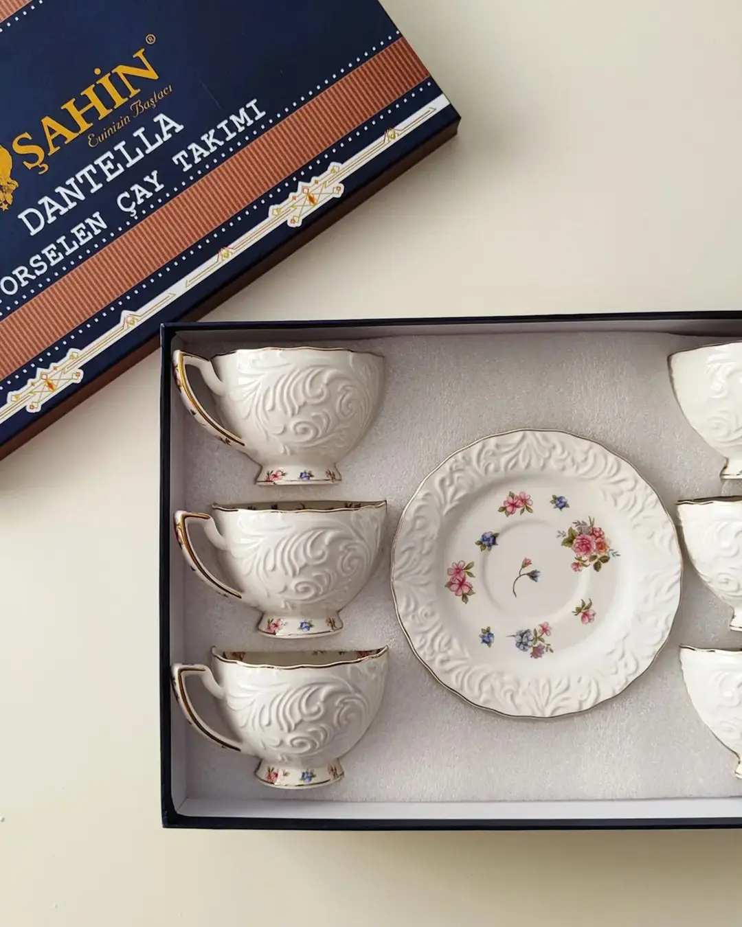 سرویس چای و قهوه خوری 6 تایی گل برجسته Şahin طرح گل