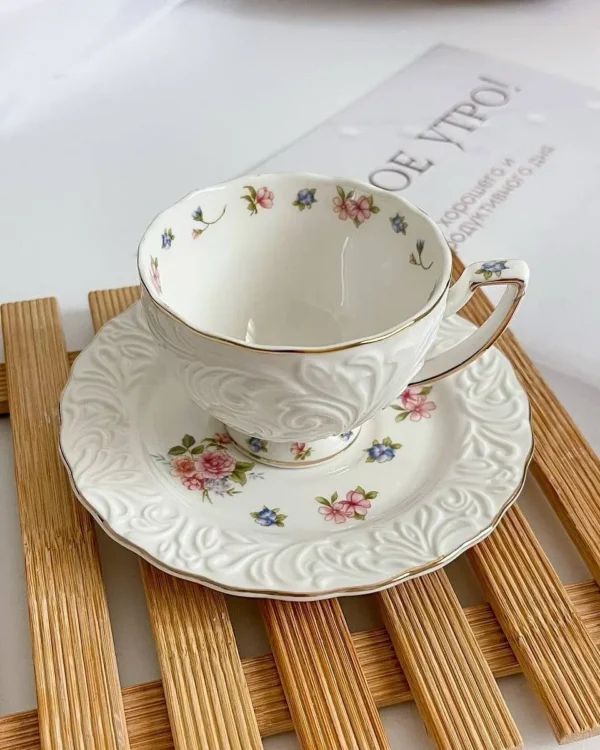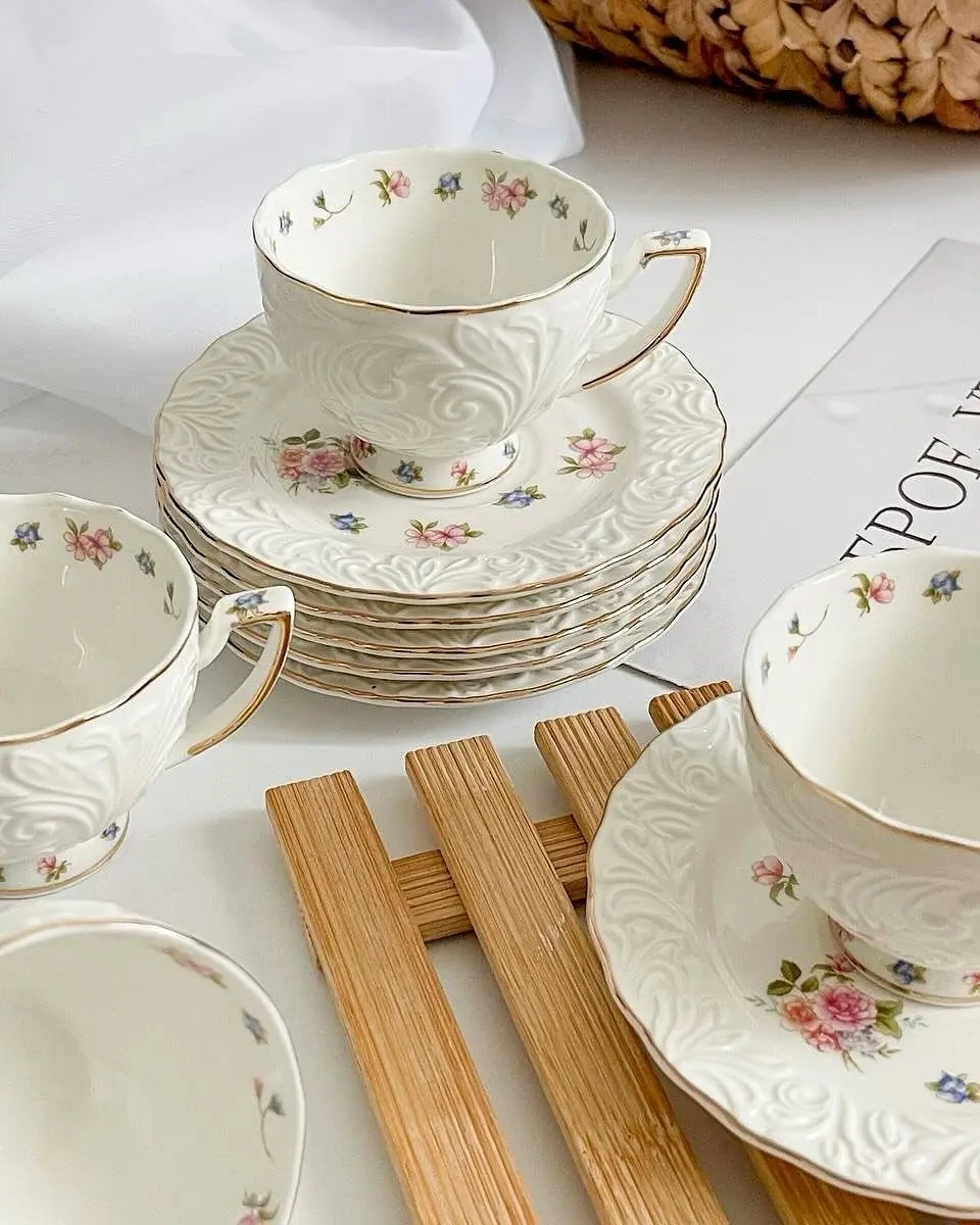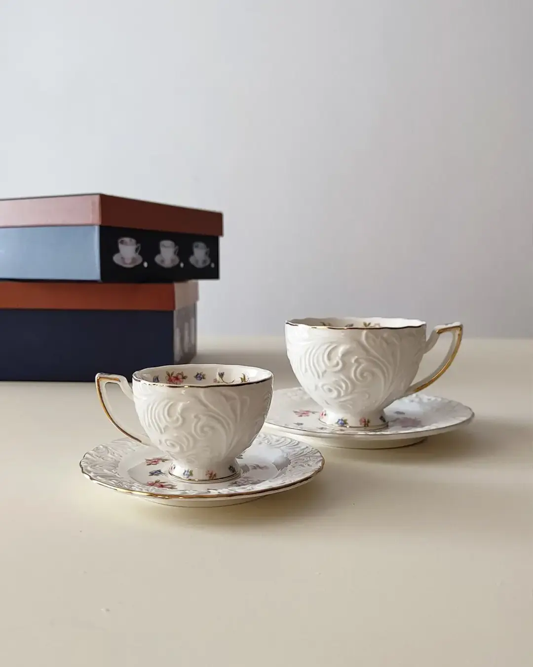 سرویس چای و قهوه خوری 6 تایی گل برجسته Şahin طرح گل