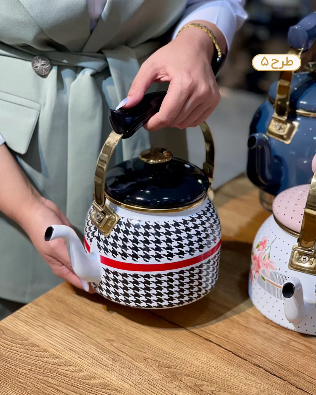 کتری لعابی دسته بالا آجار ترکیه (5 طرح)